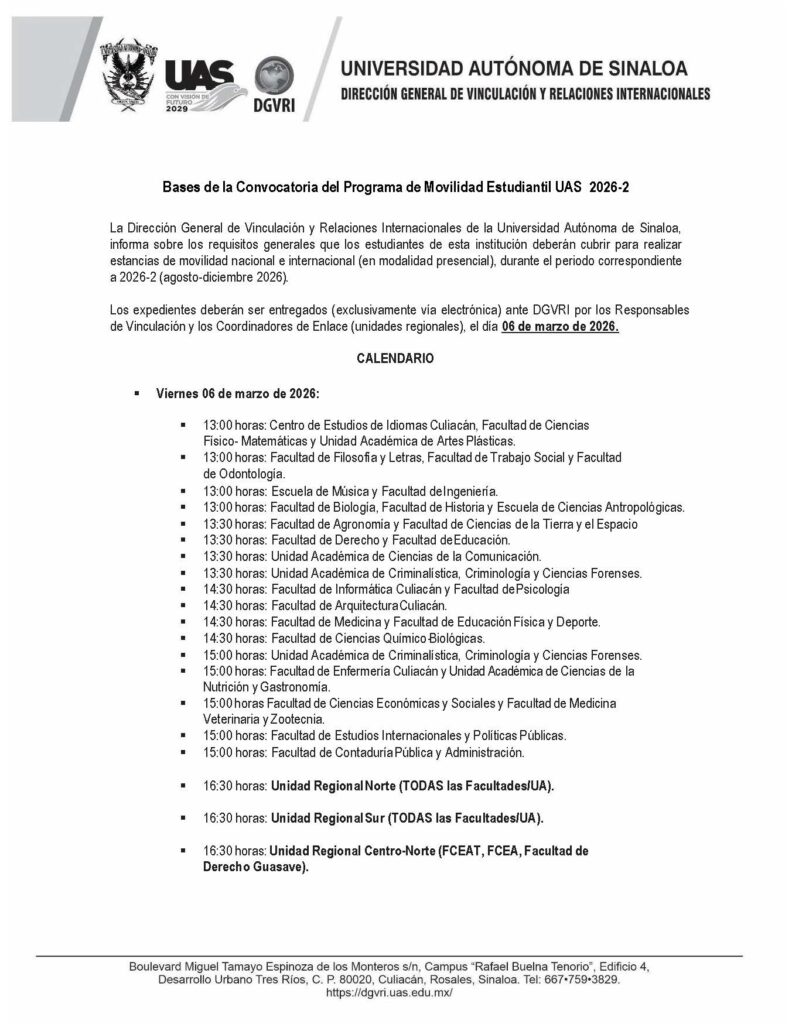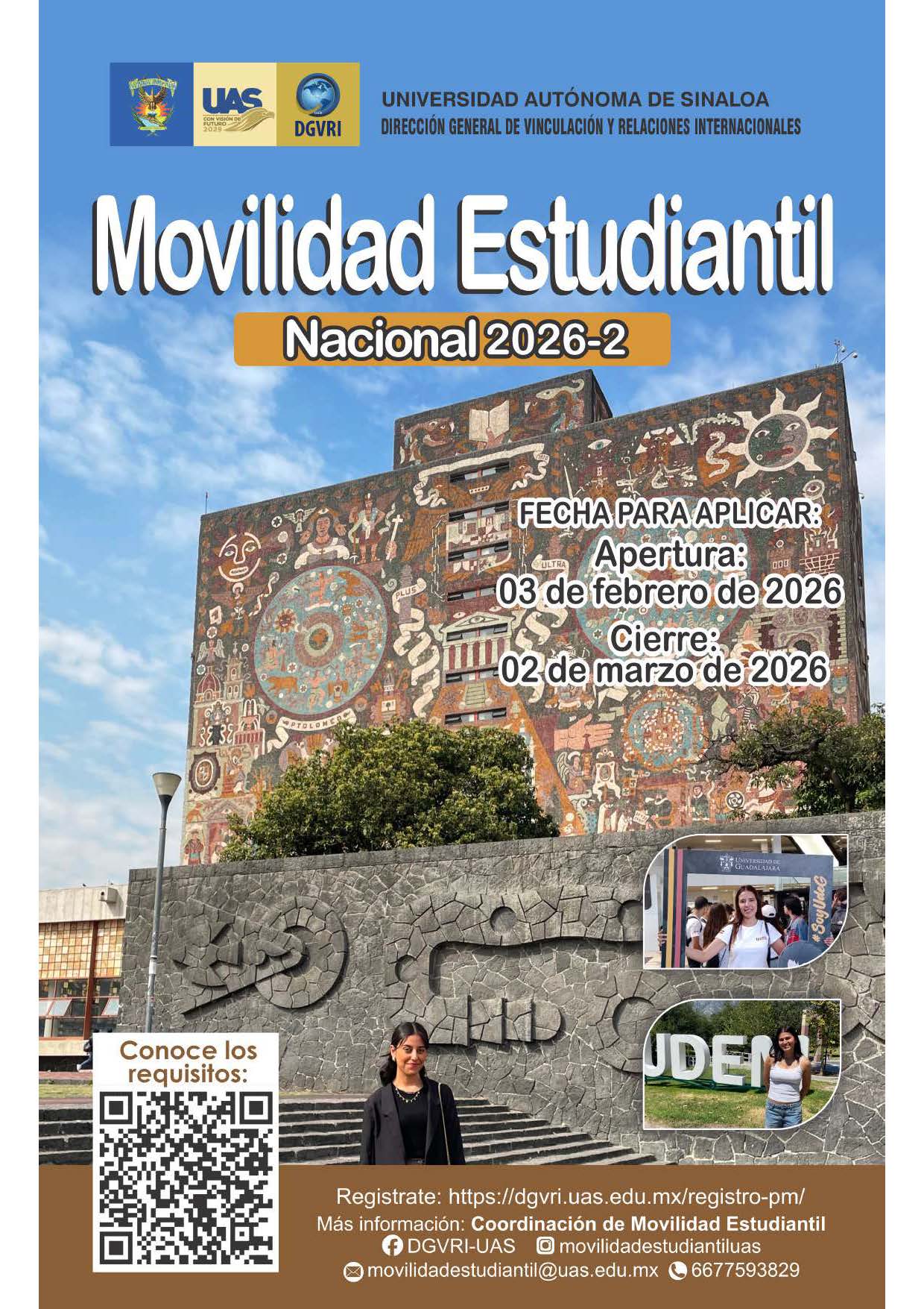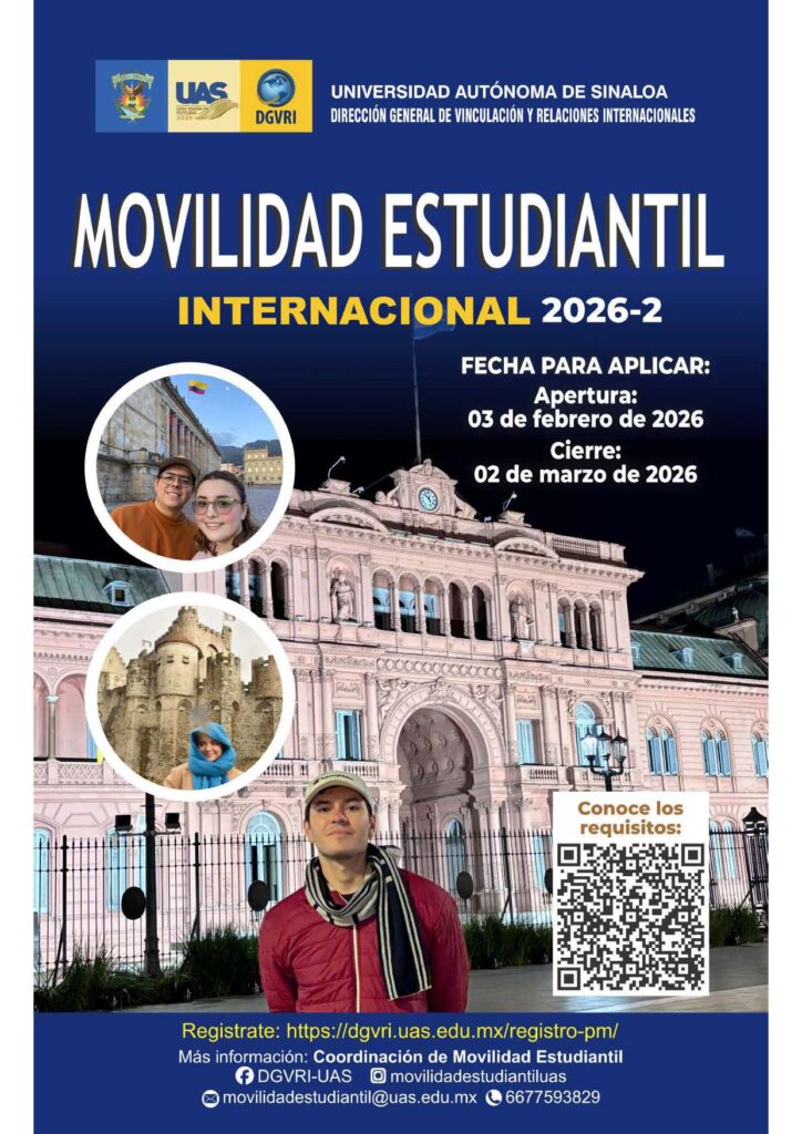 Ya se encuentran disponibles las convocatorias de movilidad estudiantil para el periodo 2026-2 (agosto–diciembre 2026).